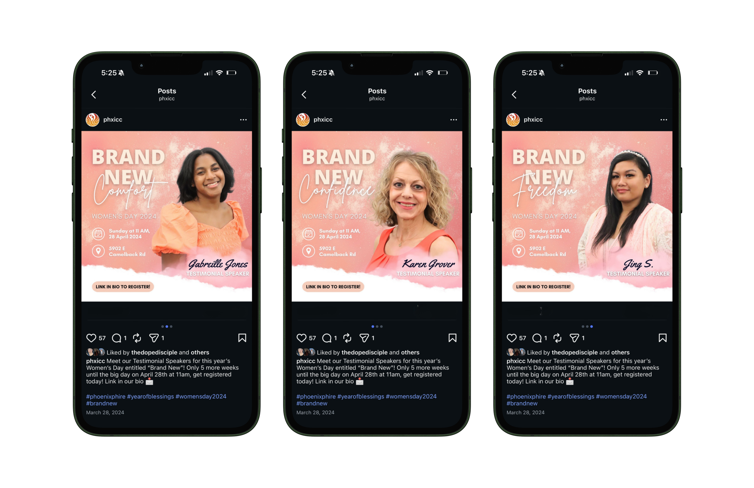 Promotional content designed for the Phoenix International Christian Church’s annual Women’s Day event themed “Brand New” for 2024.