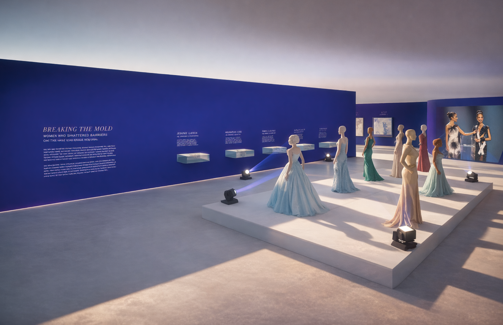 A MUSEUM EXHIBIT ABOUT THE MISS UNIVERSE BEAUTY PAGEANT AND THE INCLUSIVE CHANGES THAT HAVE BEEN MADE OVER TIME. THIS PROJECT FEATURES MUSEUM LAYOUT DESIGN, BOOK DESIGN, SIGNAGE, AND MERCHANDISE.