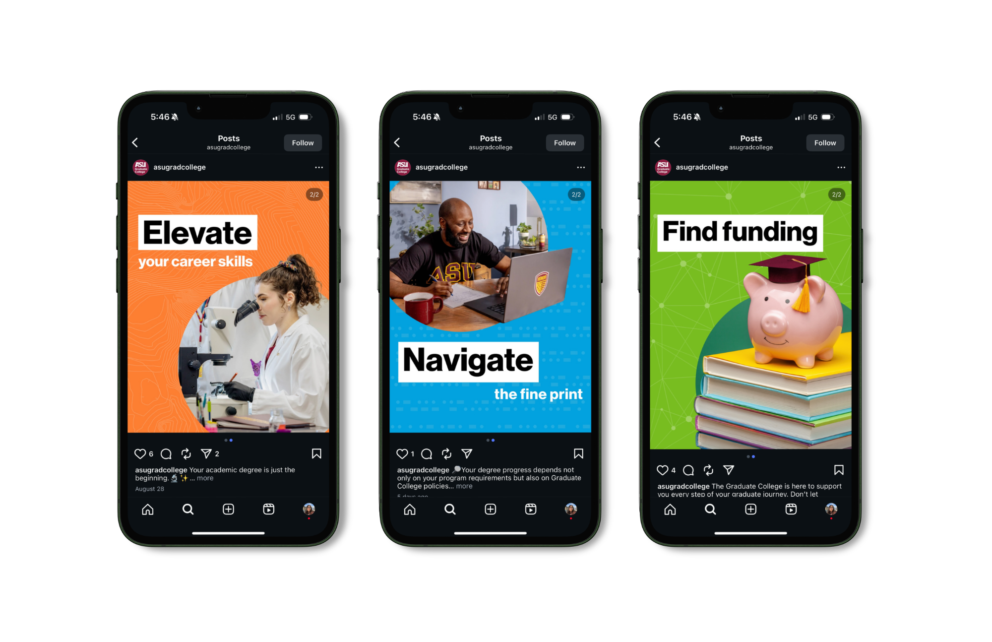 Content for the Graduate College at Arizona State University, promoting their assistance and resources for their students.